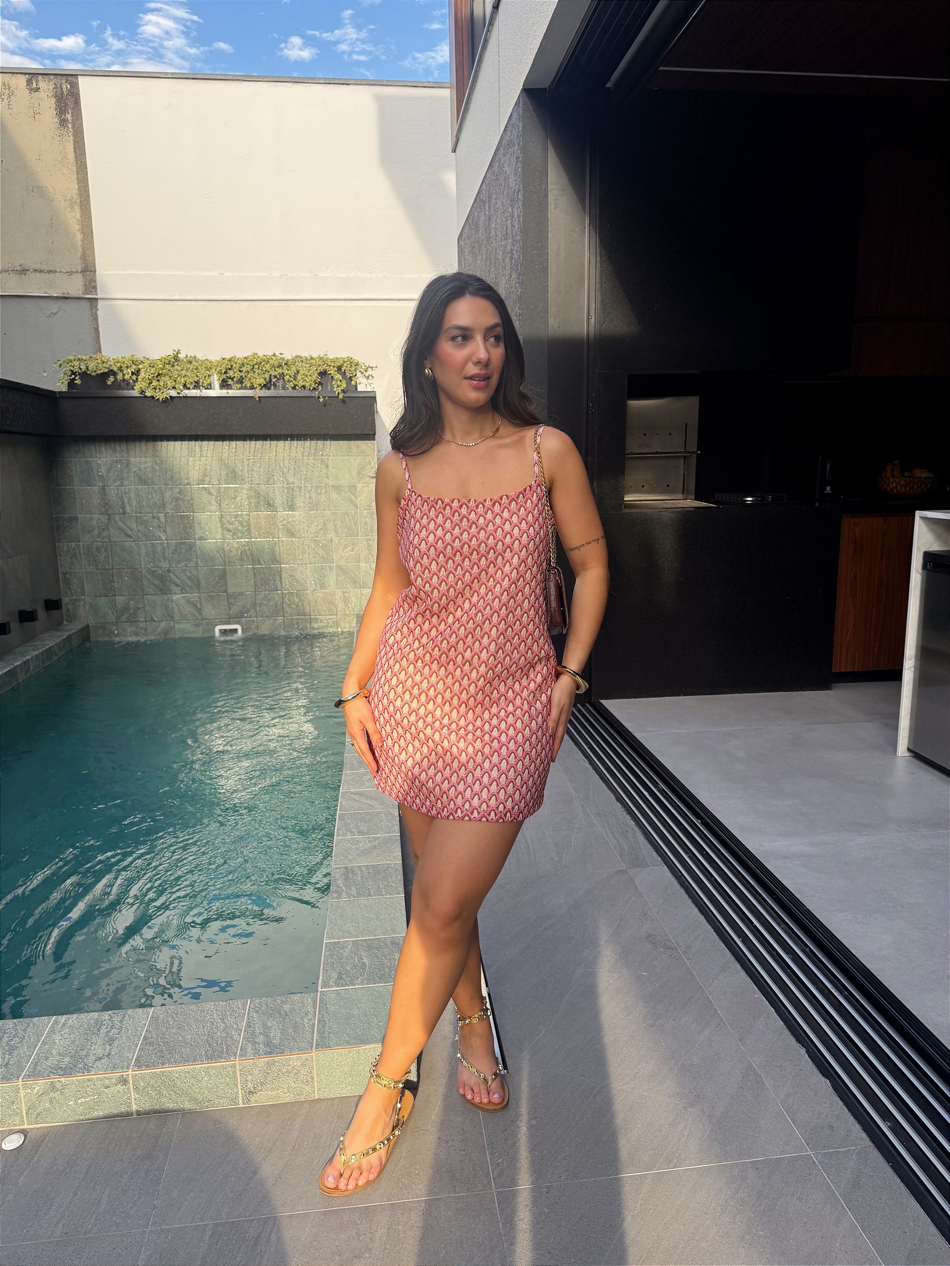 Confeccionado em malha crochê de textura delicada, o vestido apresenta modelagem soltinha ao corpo, sem deixar de valorizar a silhueta com elegância. O decote quadrado confere um toque moderno.